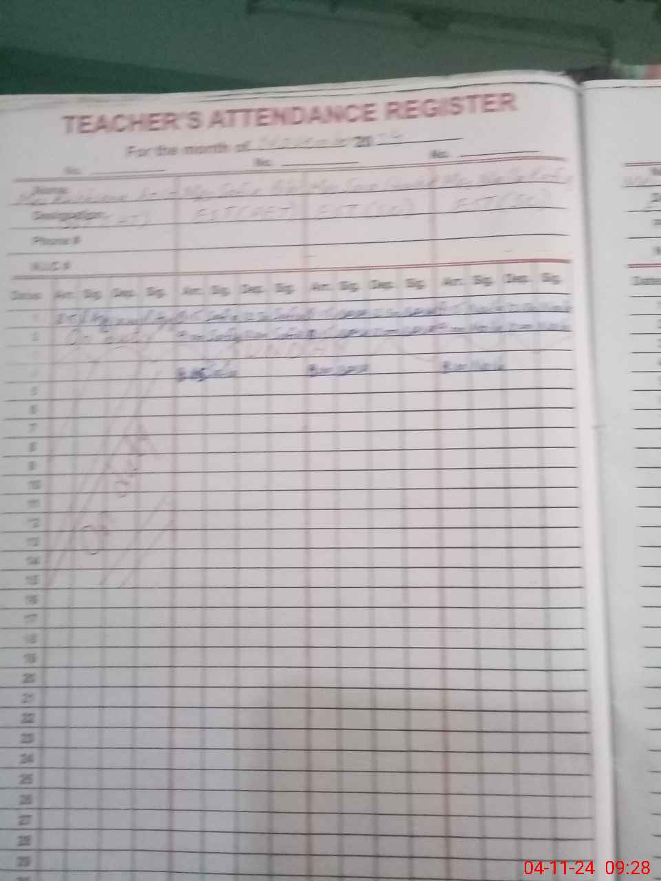 | 33**** | Ru**** Az**** | SST | Regular | 0 | 0 | 0 | 0 | 0 | 0 | 0 | 0 | 0 | Exam Duty |