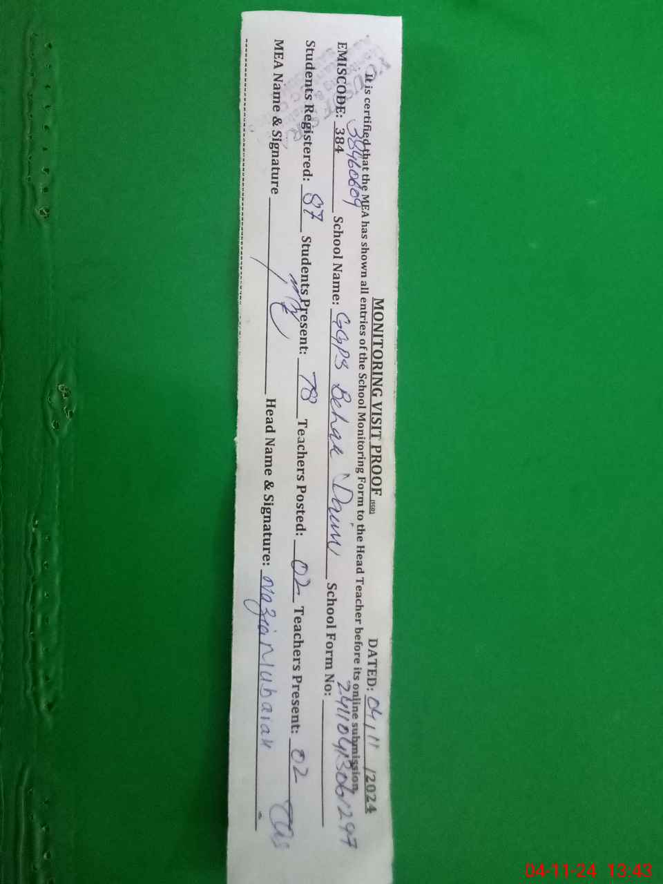 | EMIS Code: 38460609 | Name of School: GGPS BEHAK DIAM | |||