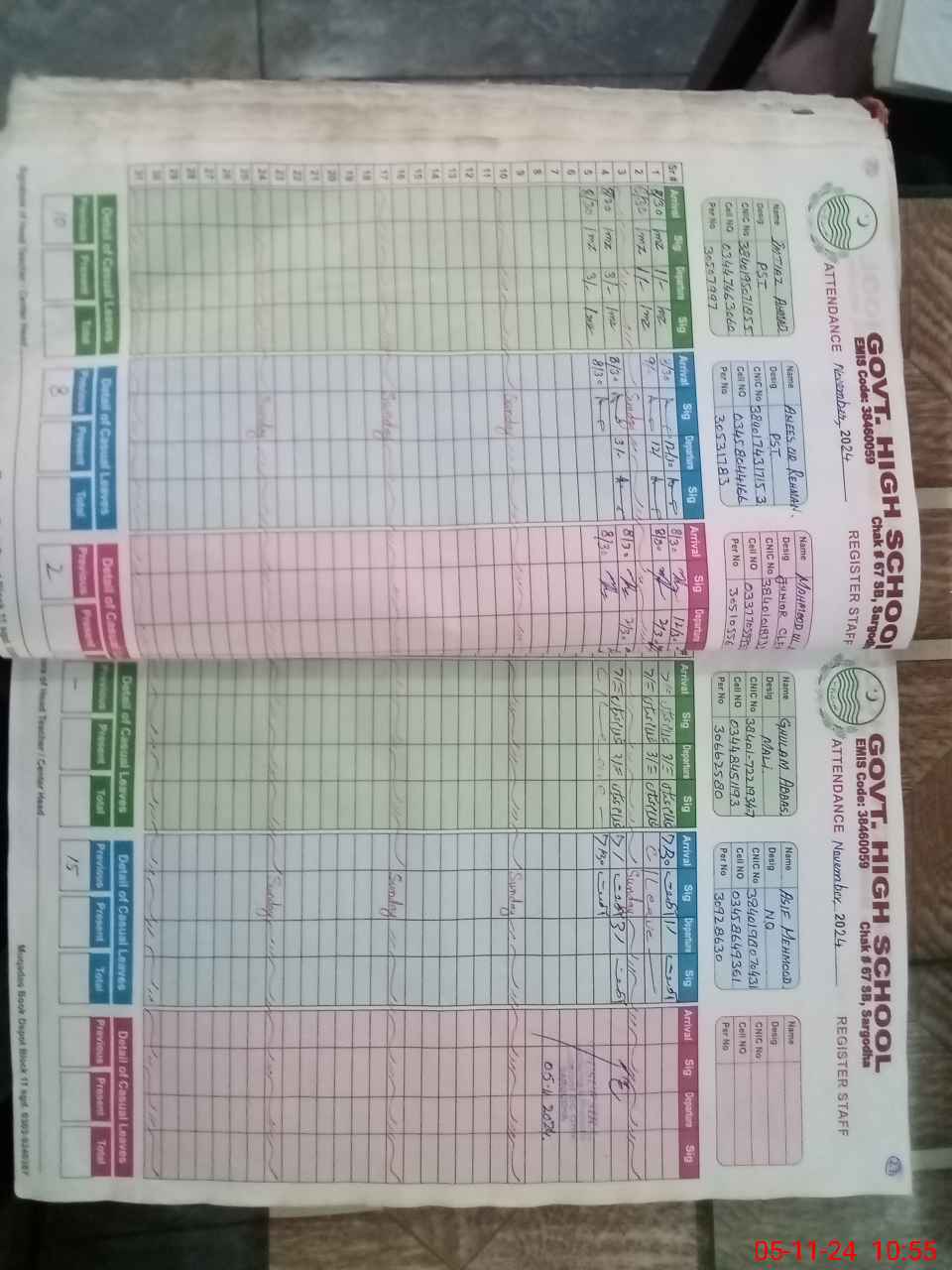| CNIC | Full Name | Designation | R/C | Absence during last cal. month |