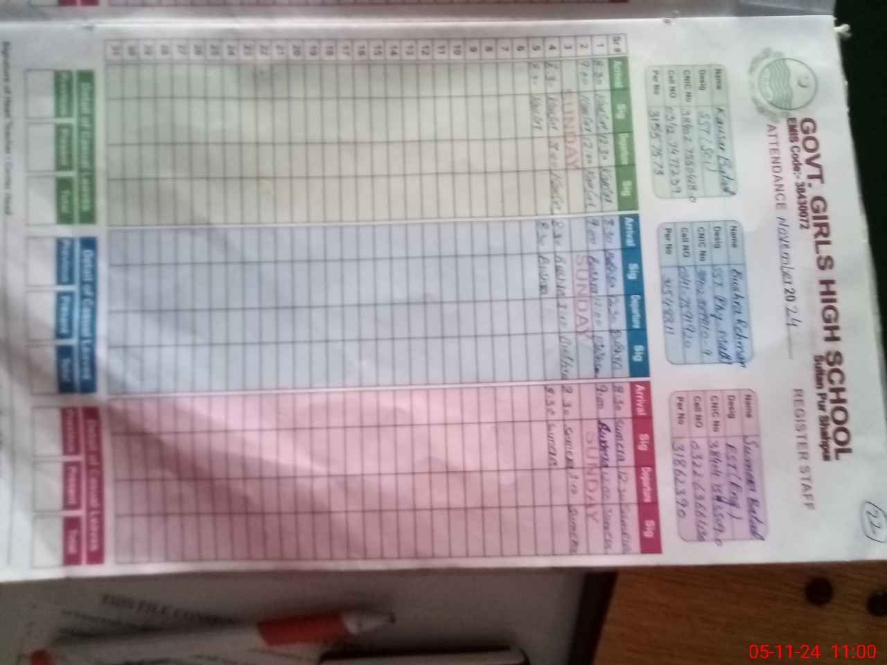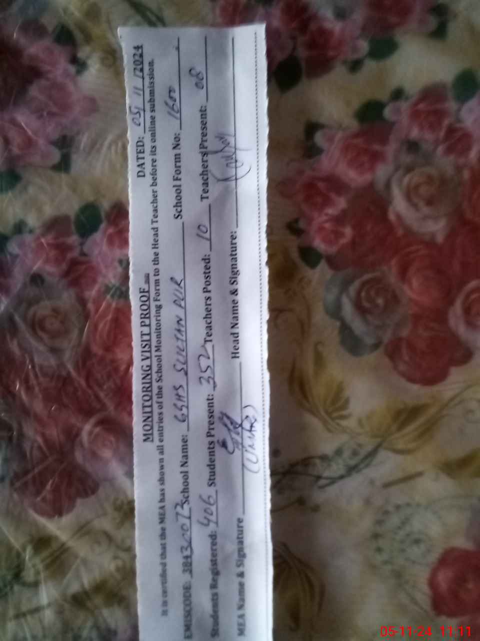 | EMIS Code: 38430072 | Name of School: GGHS SULTAN PUR | |||