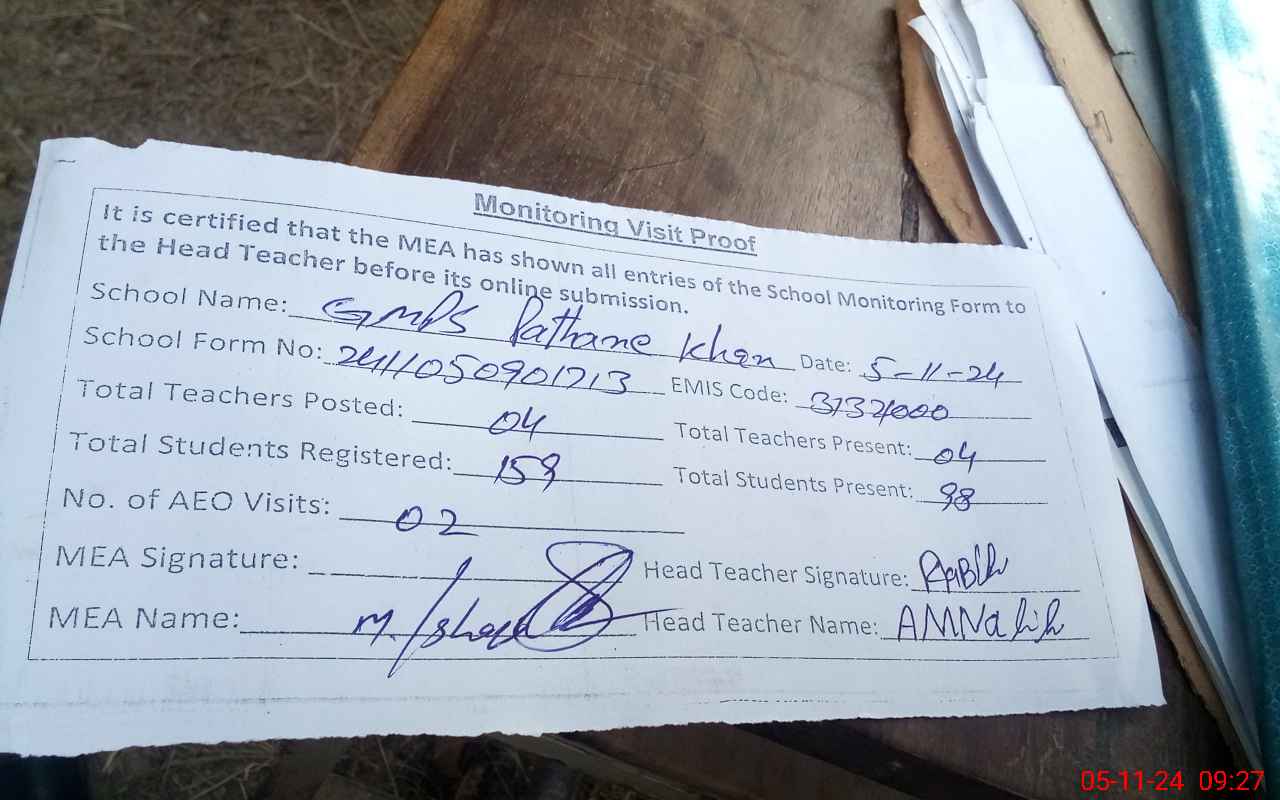 | EMIS Code: 31321000 | Name of School: GMPS PATHANAY KHAN | |||