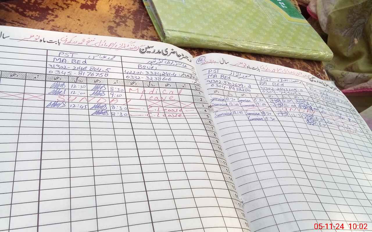 | CNIC | Full Name | Designation | R/C | Absence During Last Calender Month |