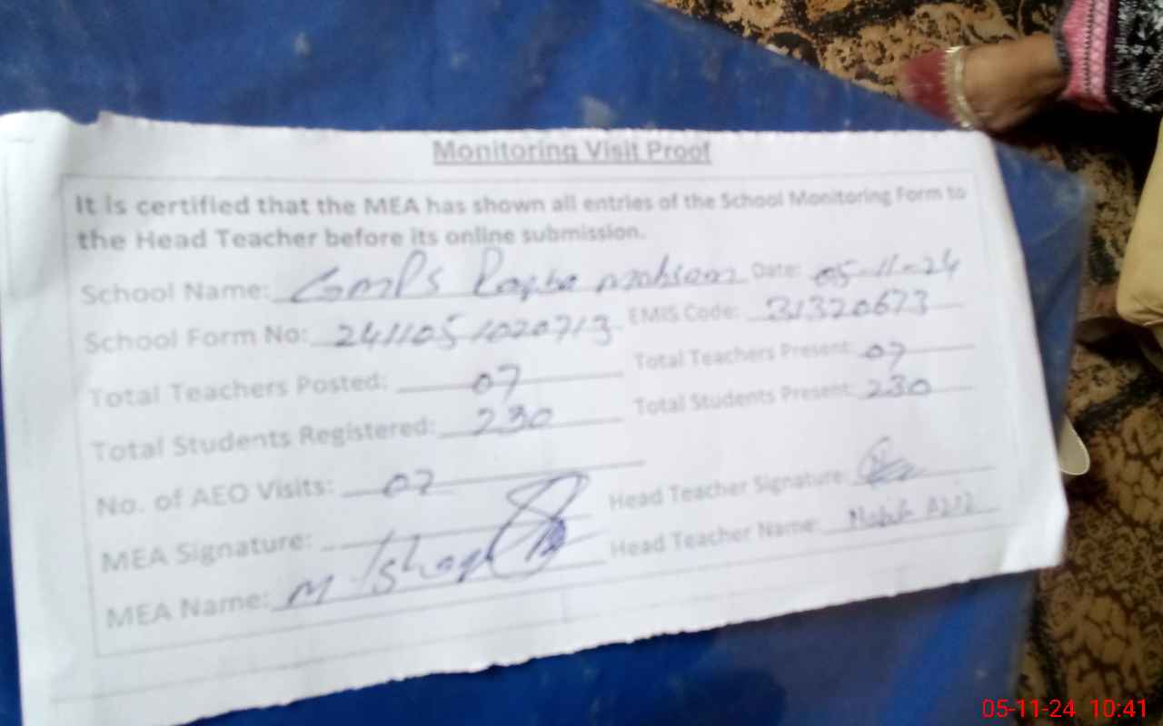 | EMIS Code: 31320673 | Name of School: GMPS RAQBA PIR MOHSIN SHAH | |||
