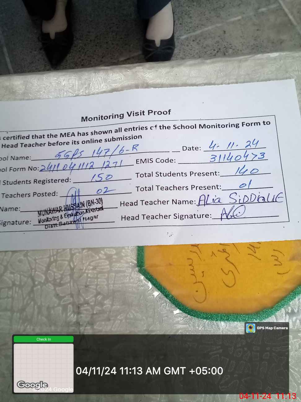 | Attendance Register | Head Teacher | MEA with School | Visit Proof |