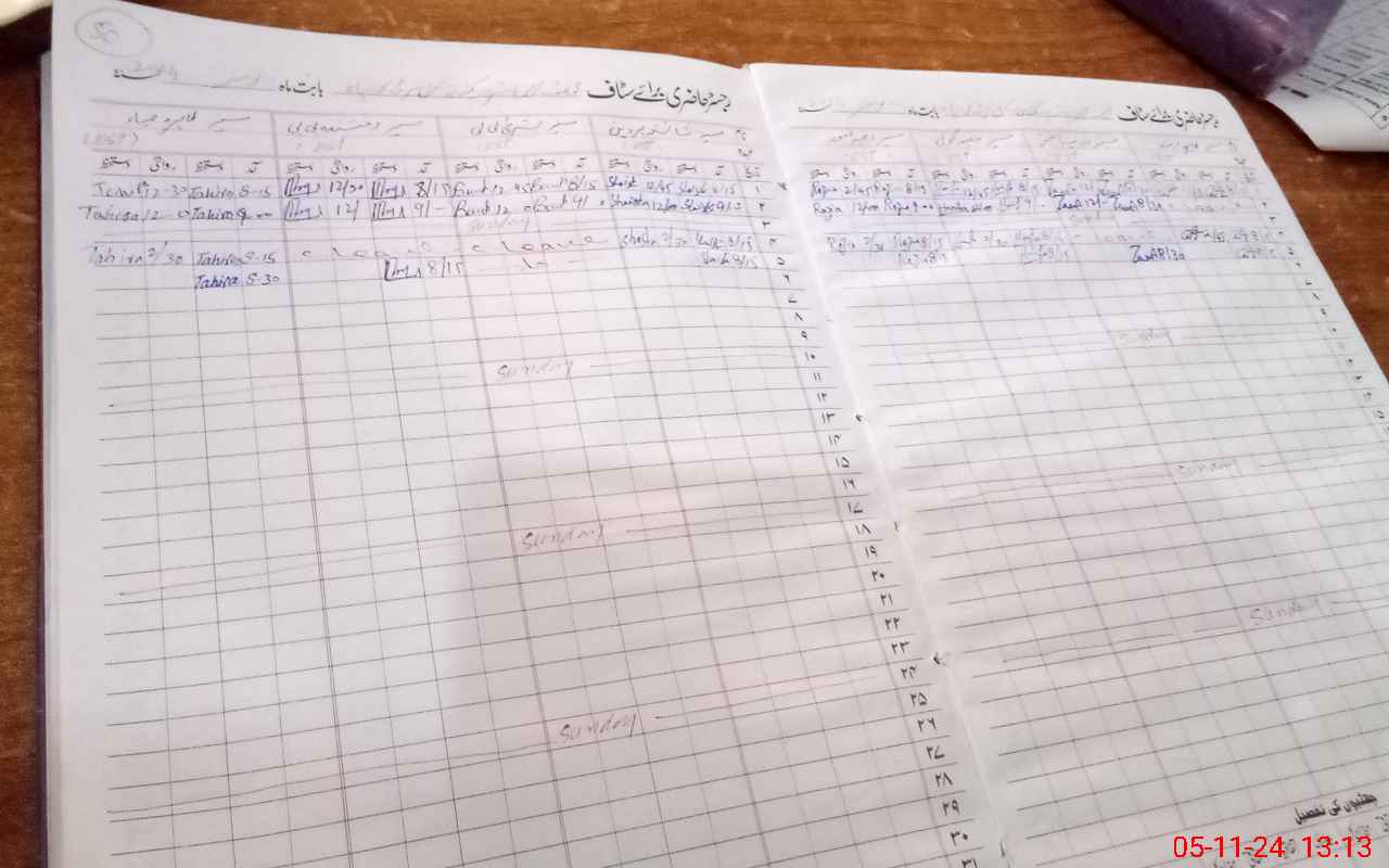 | CNIC | Full Name | Designation | R/C | Absence During Last Calender Month |