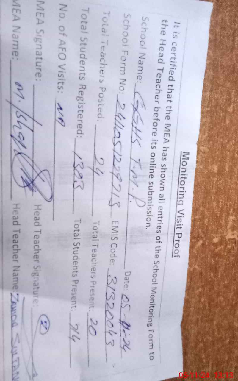 | EMIS Code: 31320043 | Name of School: GGHSS TARANDA MUHAMMAD PANAH | |||