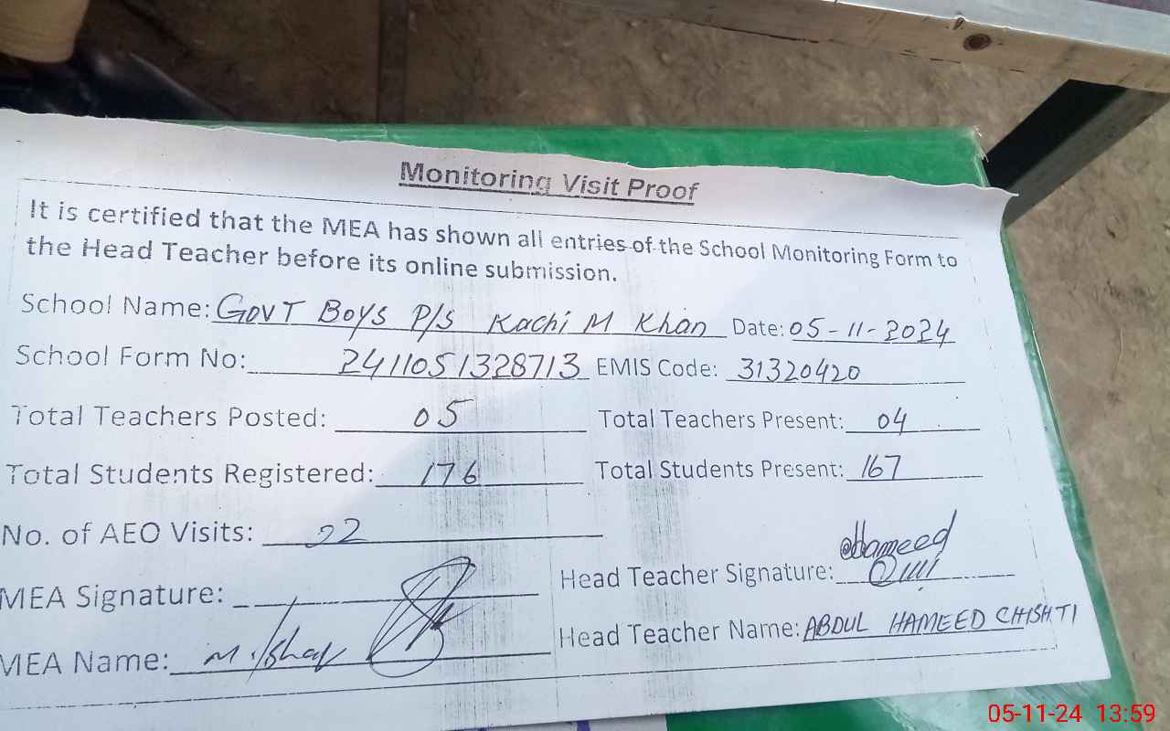 | EMIS Code: 31320420 | Name of School: GPS KACHI M. KHAN | |||