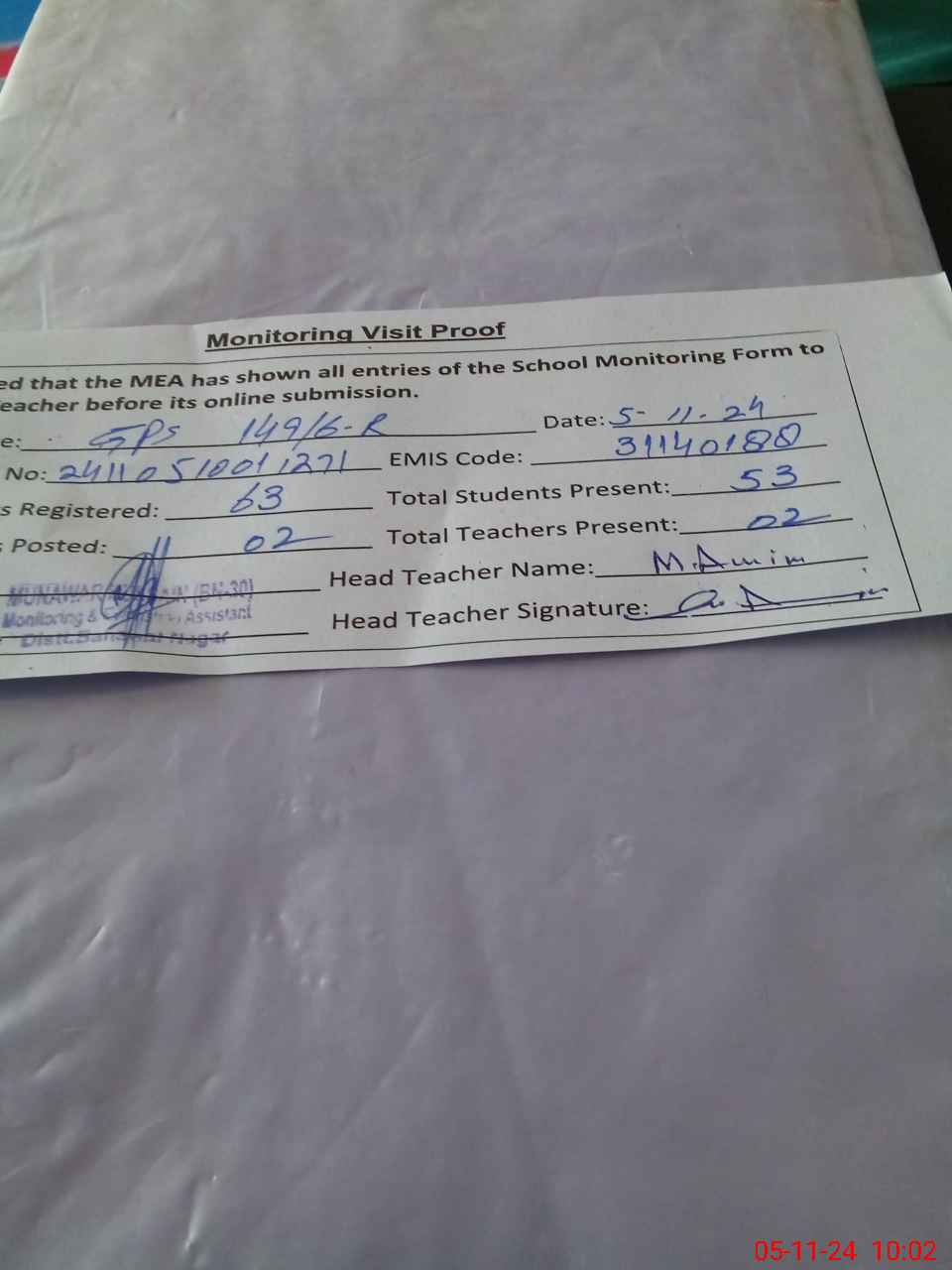| EMIS Code: 31140188 | Name of School: GPS CHAK 149/6-R (W) | |||