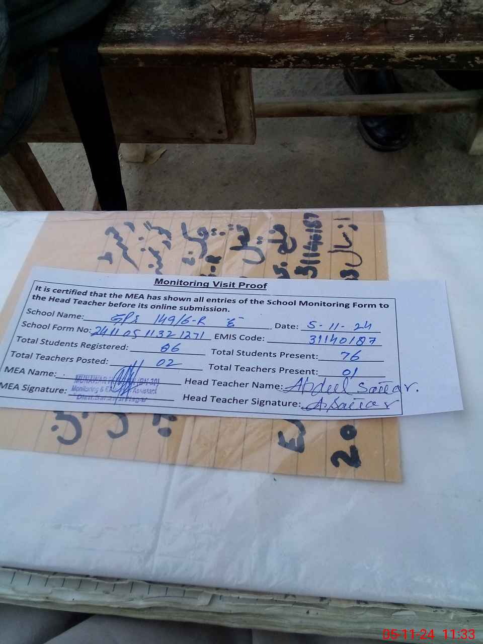 | EMIS Code: 31140187 | Name of School: GPS CHAK 149/6-R (E) | |||