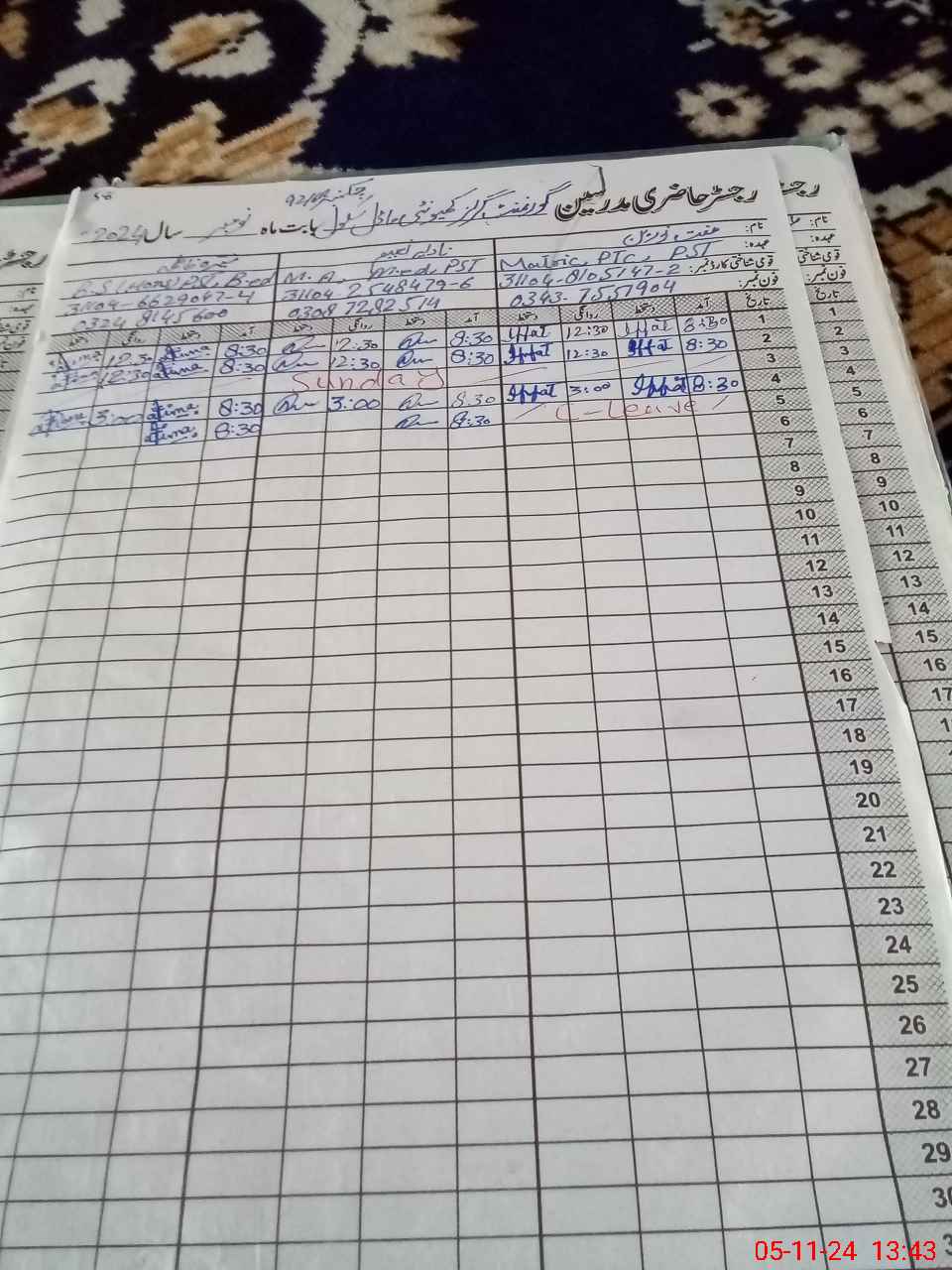 | CNIC | Full Name | Designation | R/C | Absence During Last Calender Month |