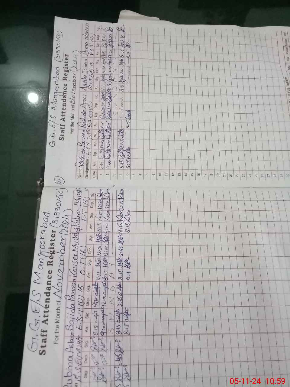 | Monitoring Date: 05-11-2024 | Start Time: 05-11-2024 10:51 AM | End Time: 05-11-2024 11:31 AM | Name of MEA: Ab**** Re**** | |