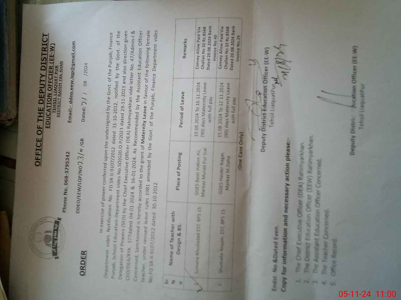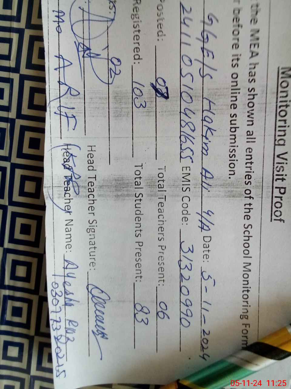 | Name: AY**** RI**** Designation: (School Headmaster's/Headmistress's) EST (Math ) Phone/Cell Number: 03**** |