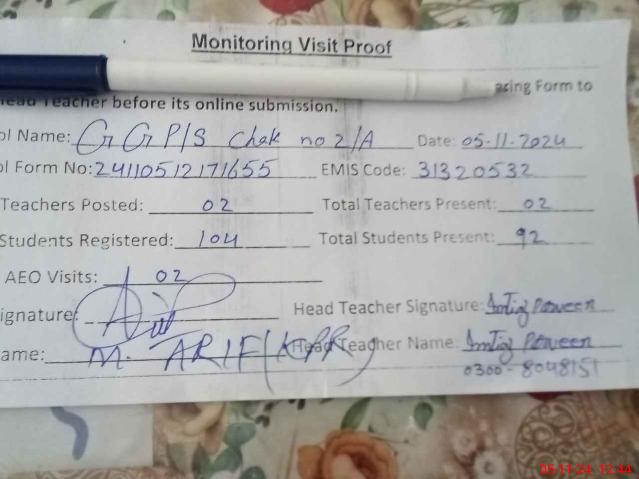 | EMIS Code: 31320532 | Name of School: GGPS CHAK NO.2/A | |||