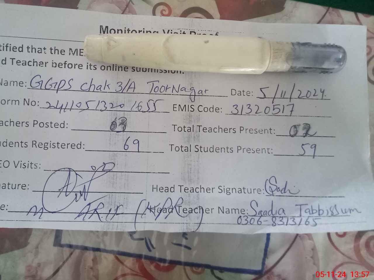 | EMIS Code: 31320517 | Name of School: GGPS CHAK NO. 3/A TOOR NAGAR | |||