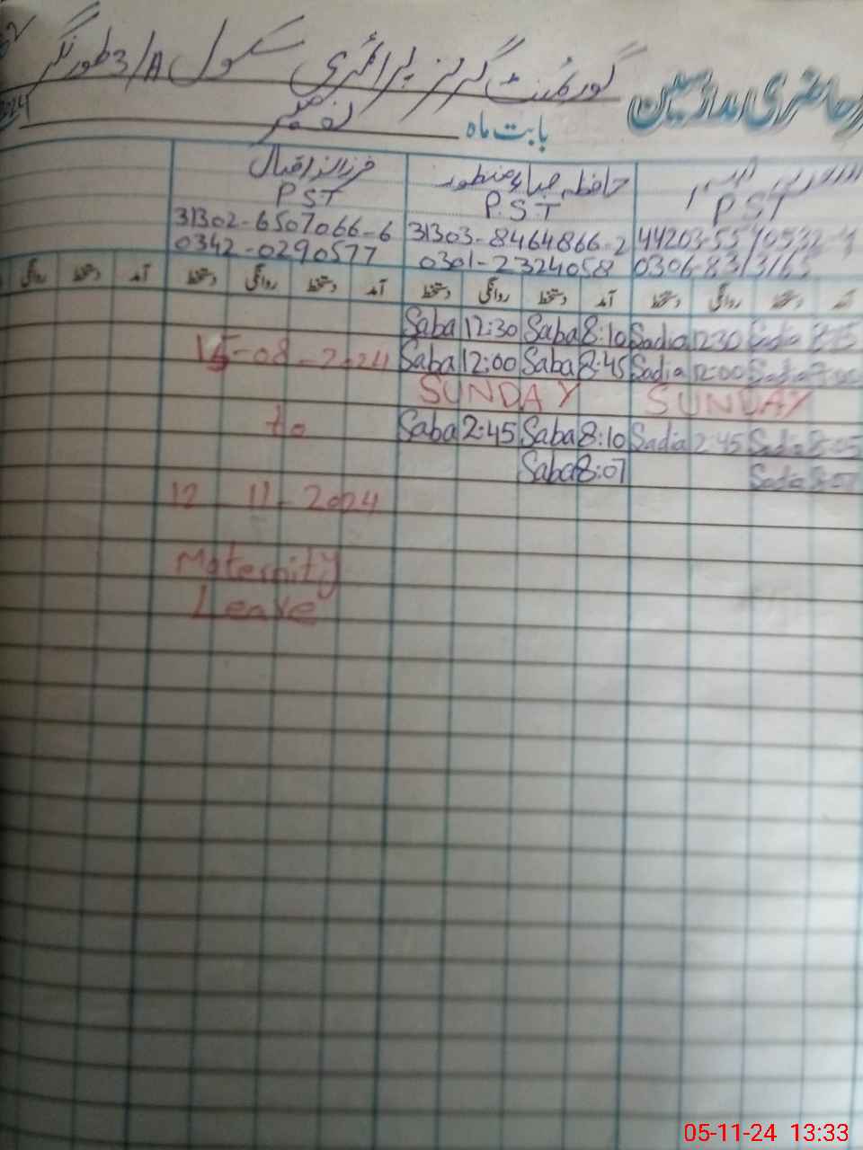 | 31**** | Fa**** Iq**** | ESE | Contract | 0 | 0 | 0 | 0 | 0 | 0 | 0 | 0 | 0 | Maternity |