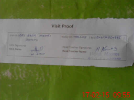 | Attendance Register | Head Teacher | MEA with School | Visit Proof |