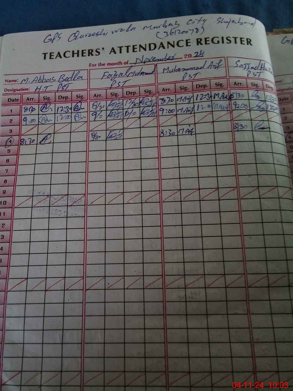 | Name: Mu**** Ab**** Designation: (School Headmaster's/Headmistress's) HEADMASTER Phone/Cell Number: 03**** |