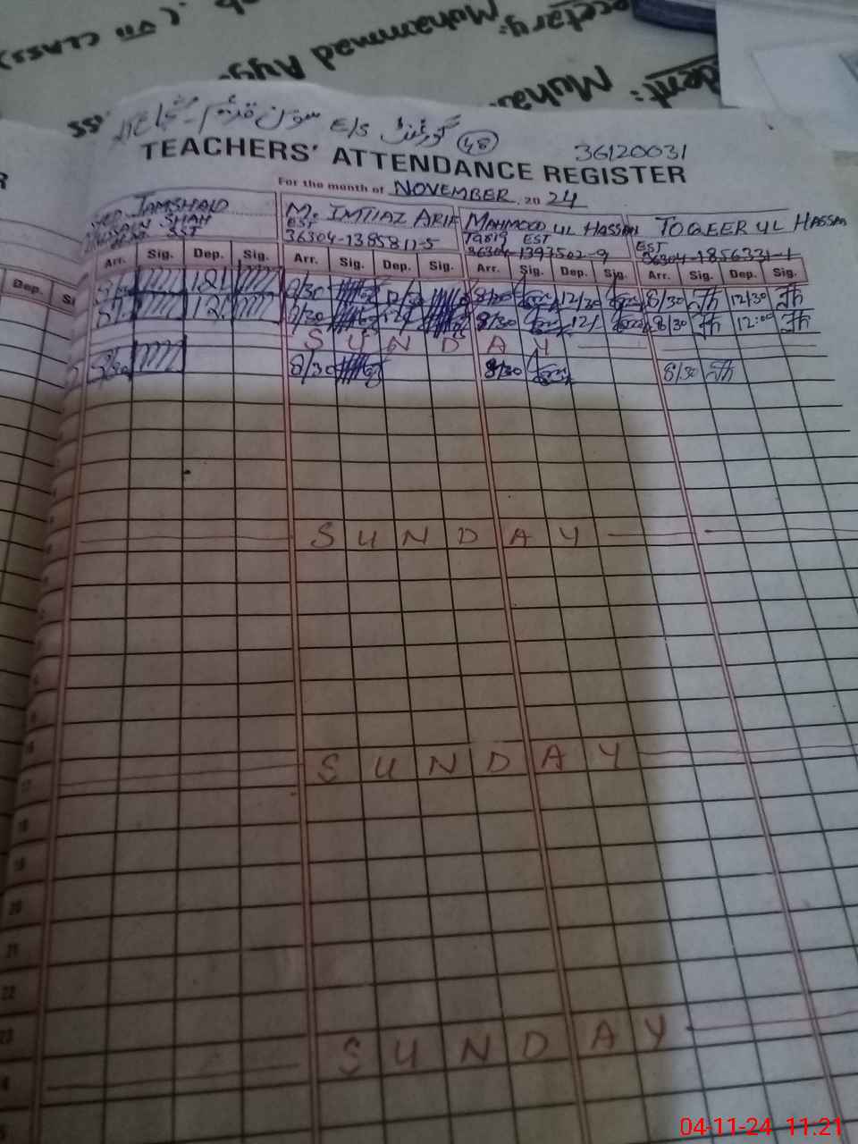 | CNIC | Full Name | Designation | R/C | Absence During Last Calender Month |