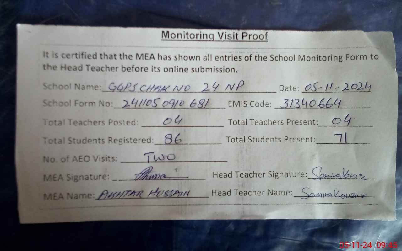 | EMIS Code: 31340664 | Name of School: GGPS CHAK NO.24/NP | |||