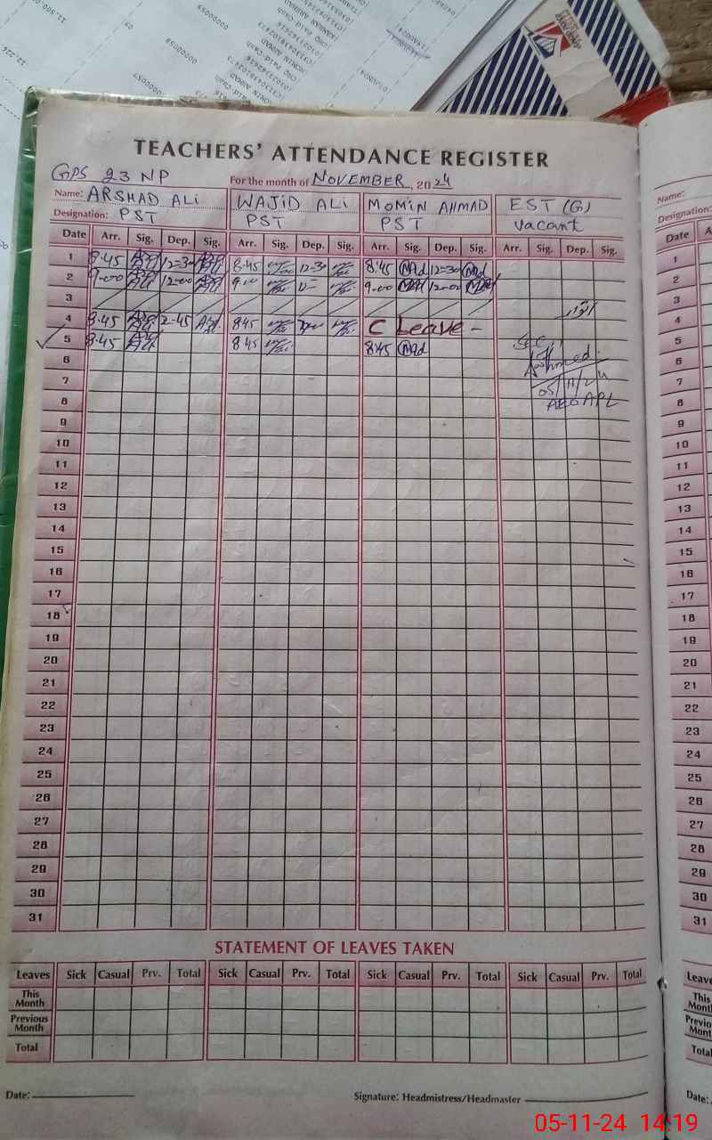 | Name: AR**** AL**** Designation: (School Headmaster's/Headmistress's) PST Phone/Cell Number: 03**** |