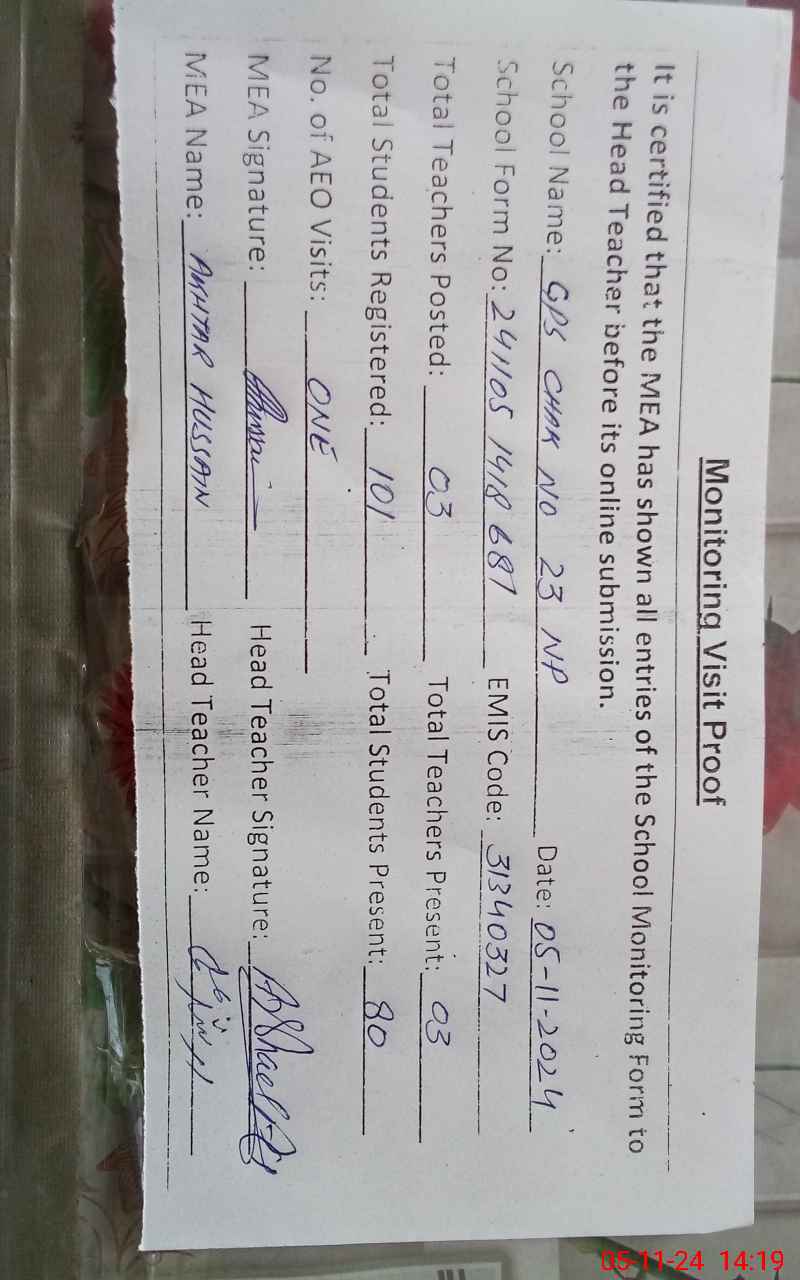 | EMIS Code: 31340327 | Name of School: GPS CHAK NO 23/NP | |||