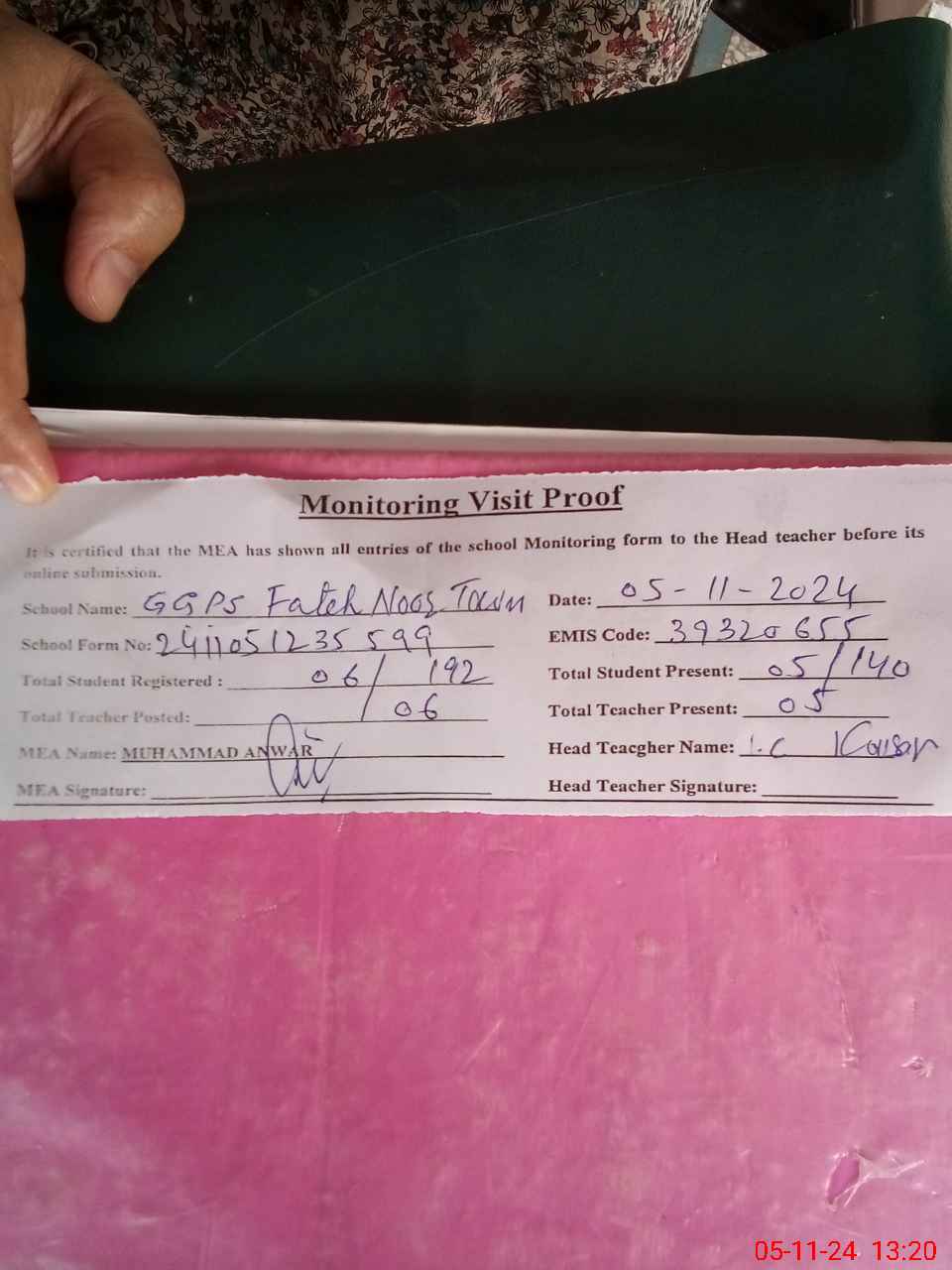 | EMIS Code: 39320655 | Name of School: GGPS FATEH NOOR TOWN | |||