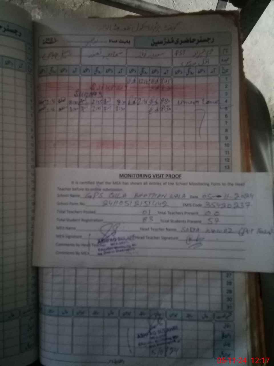 | EMIS Code: 35420237 | Name of School: GPS QILA BHATTIAN WALA | |||