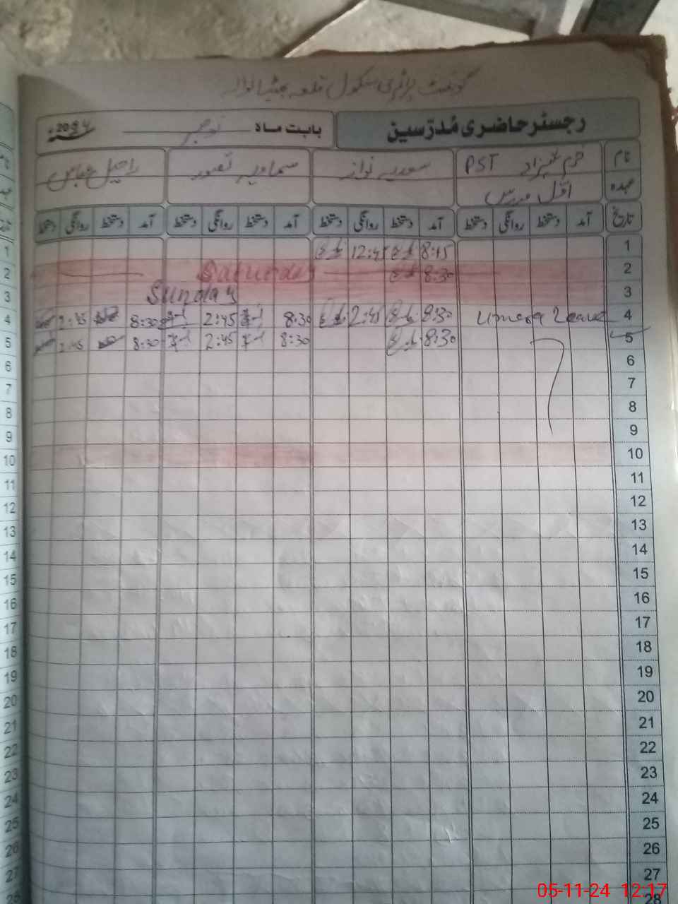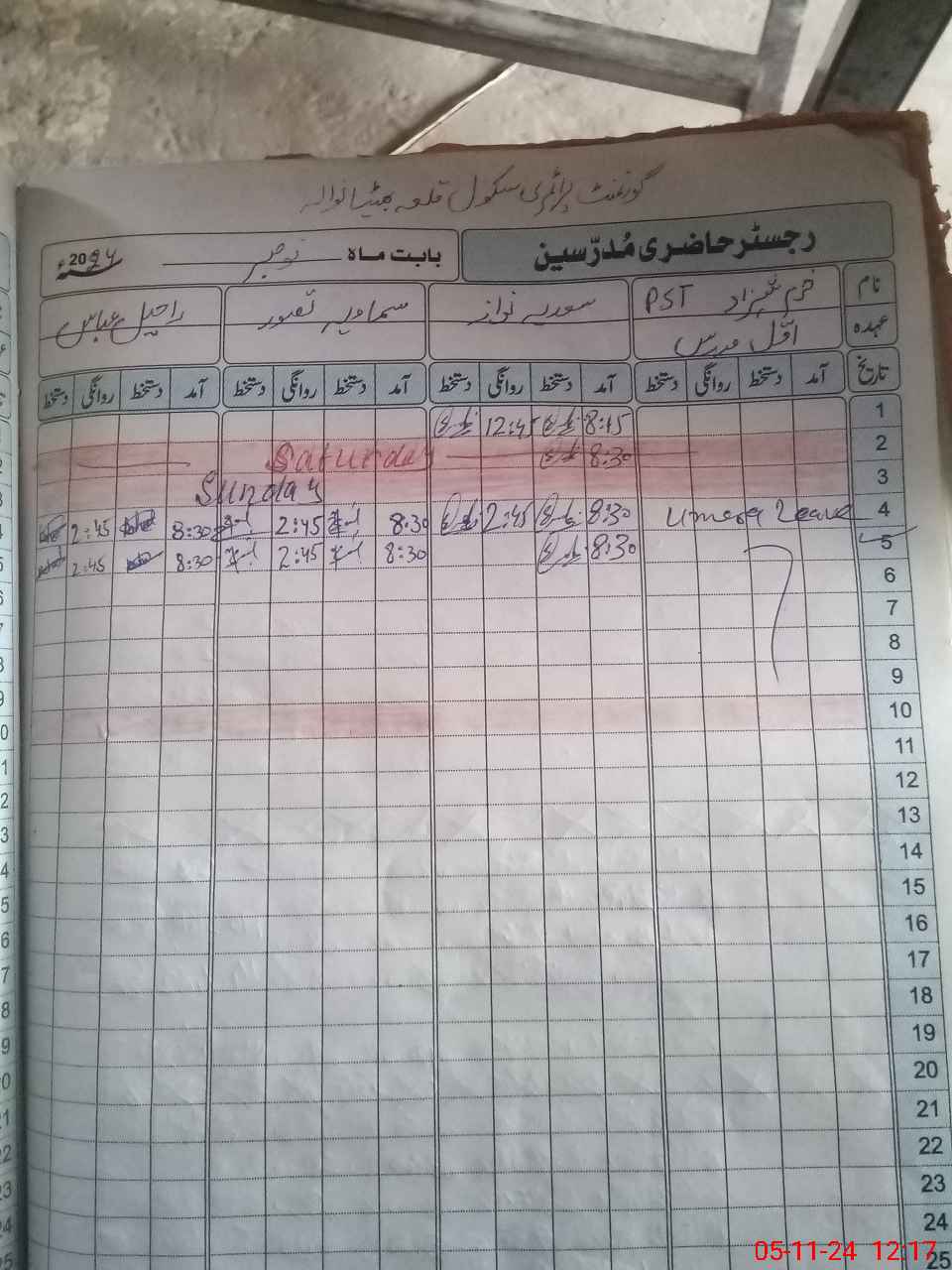 | Name: Kh**** Sh**** Designation: (School Headmaster's/Headmistress's) PST Phone/Cell Number: 03**** |