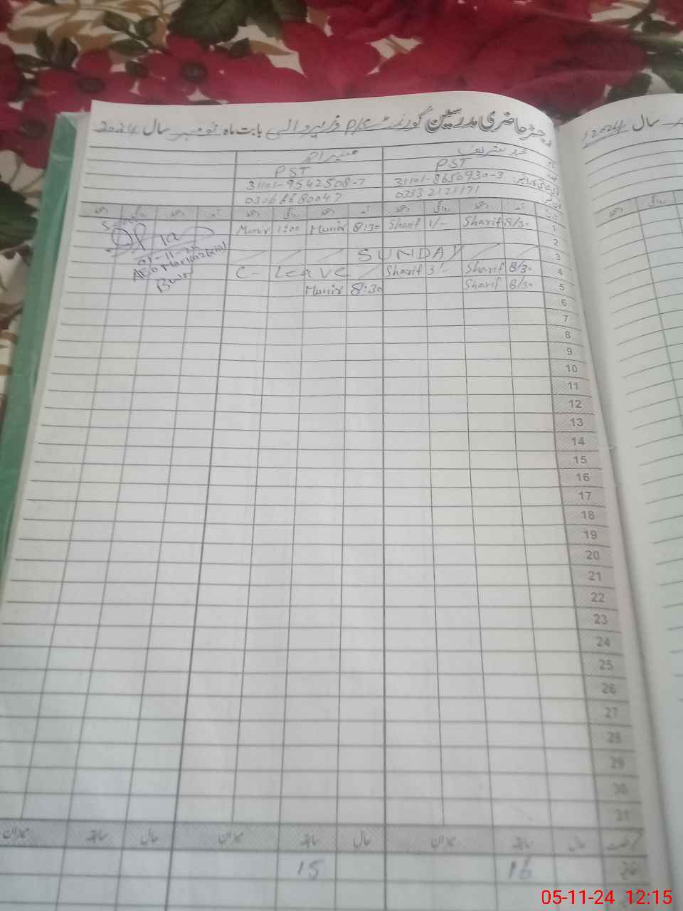 | CNIC | Full Name | Designation | R/C | Absence During Last Calender Month |