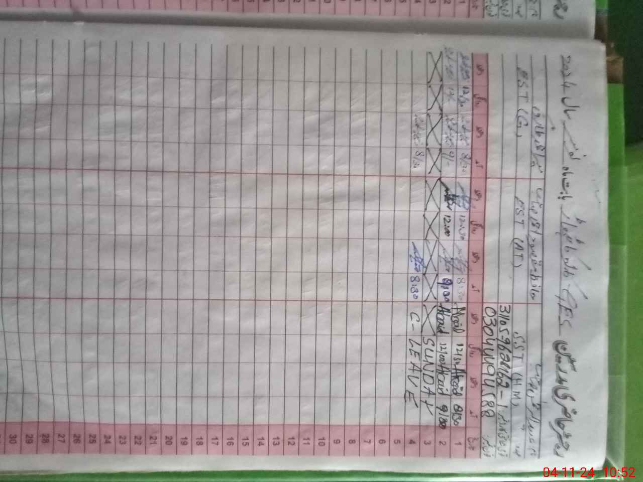 | CNIC | Full Name | Designation | R/C | Absence During Last Calender Month |