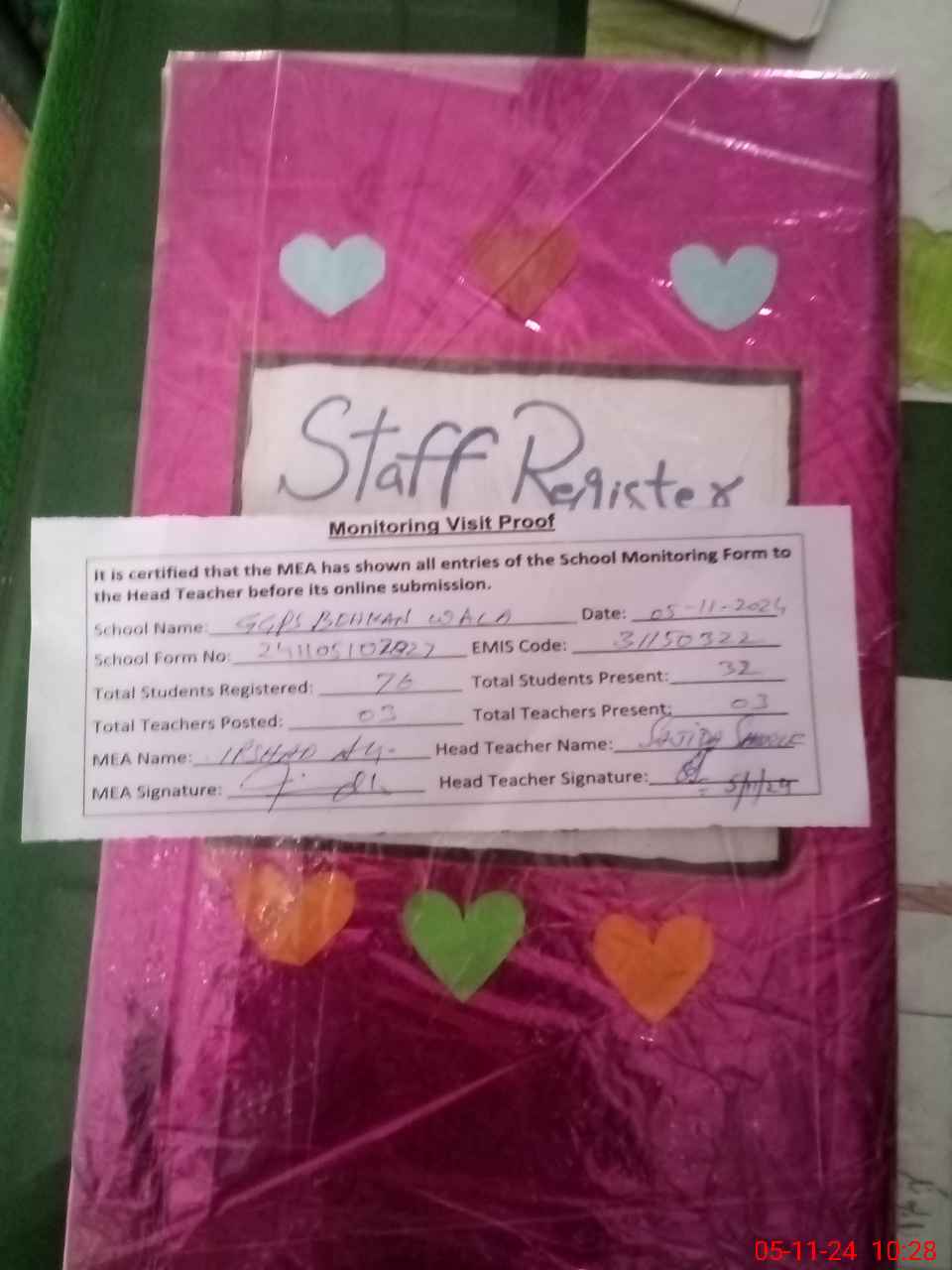| EMIS Code: 31150322 | Name of School: GGPS BEHKAN WALA | |||