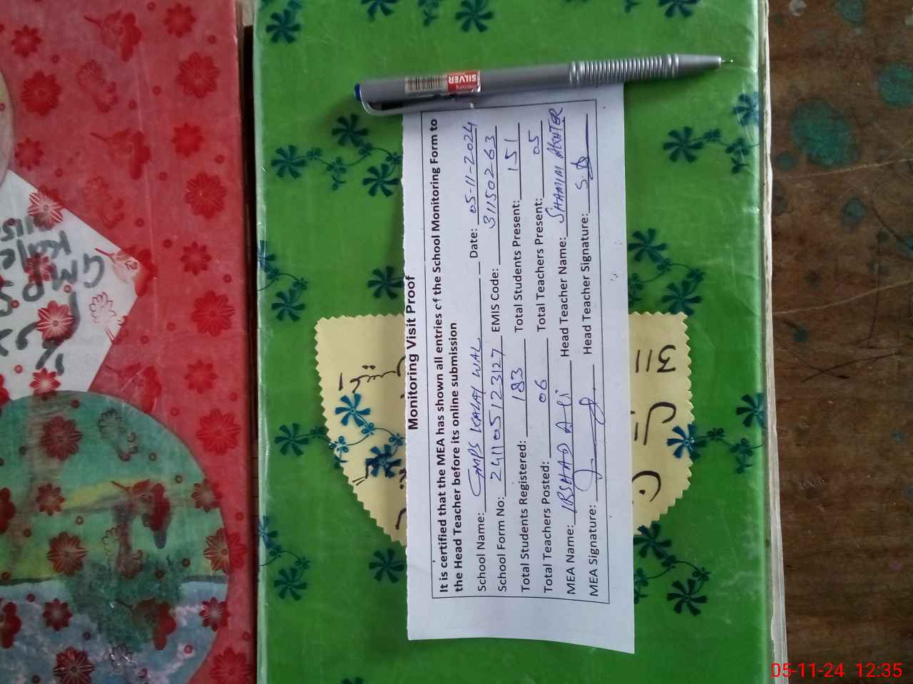 | Attendance Register | Head Teacher | MEA with School | Visit Proof |