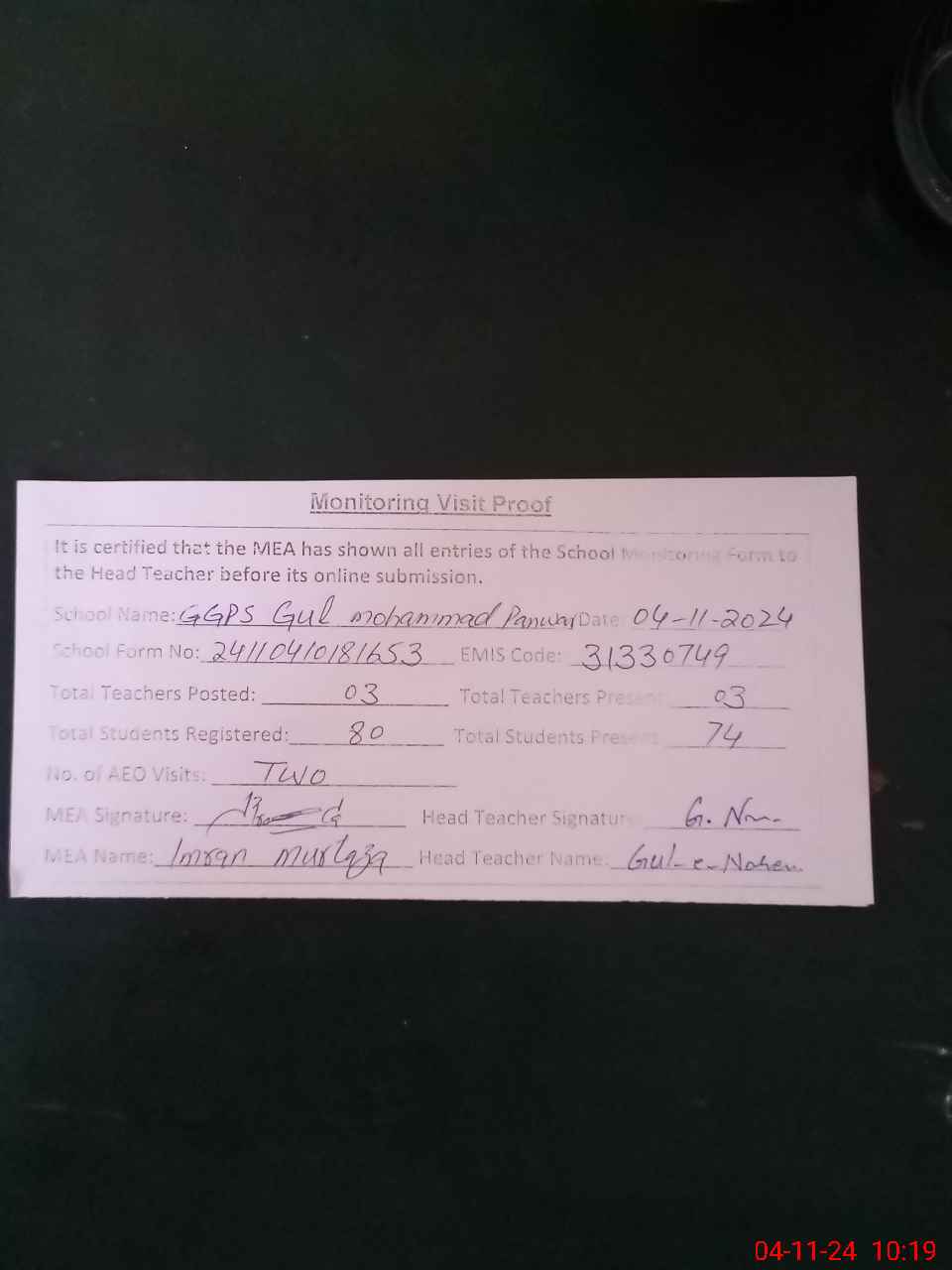 | EMIS Code: 31330749 | Name of School: GGPS GUL MUHAMMAD PANWAR | |||