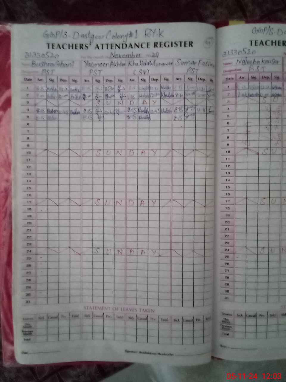 | EMIS Code: 31330520 | Name of School: GGPS DASTGEER COLONY NO. 1 | |||