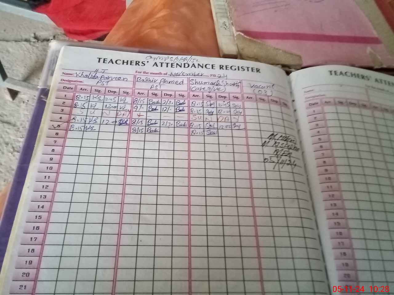 | Name: Kh**** Pa**** Designation: (School Headmaster's/Headmistress's) PST Phone/Cell Number: 03**** |