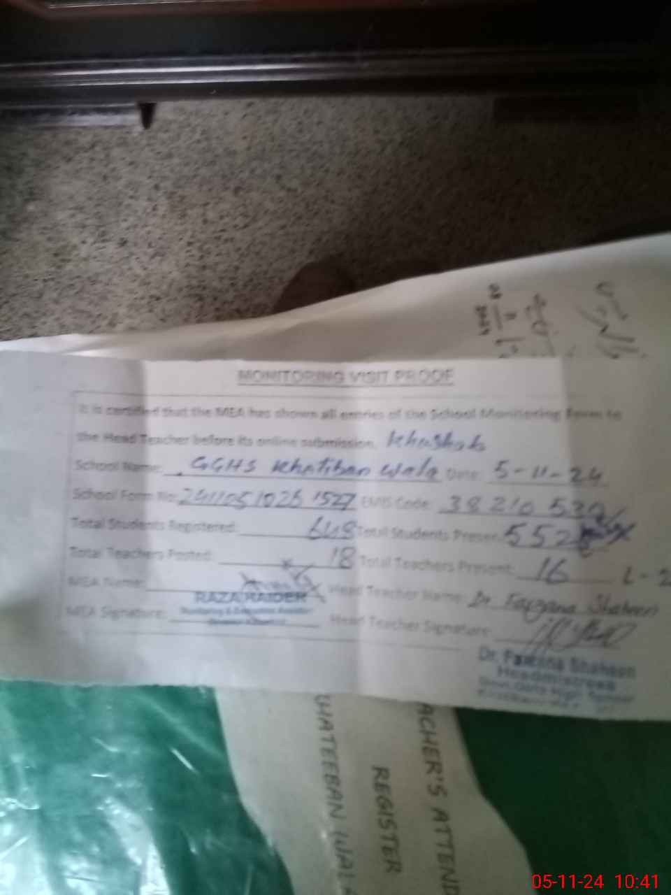 | EMIS Code: 38210530 | Name of School: GGHS KHATEEBAN WALA | |||