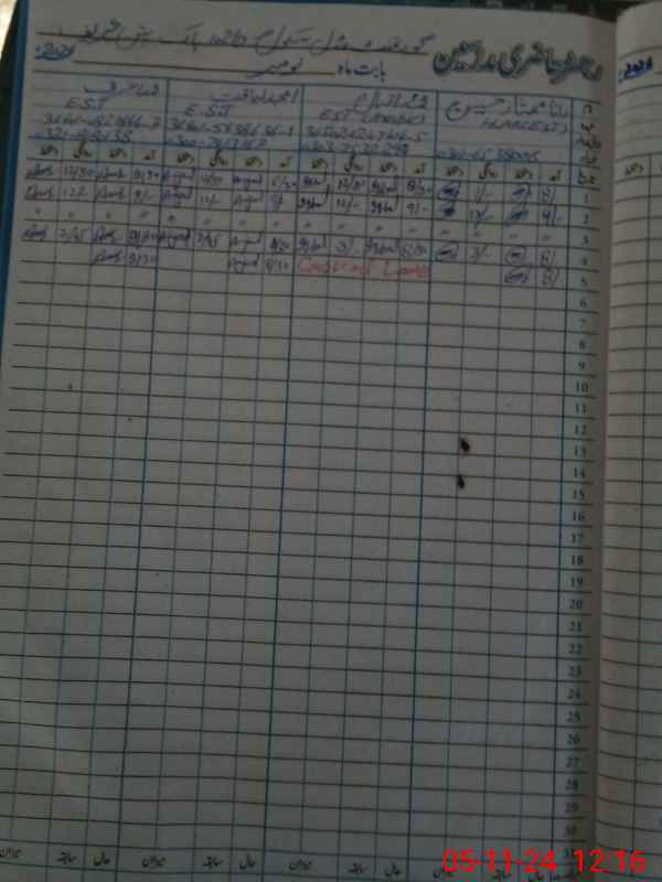 | CNIC | Full Name | Designation | R/C | Absence During Last Calender Month |