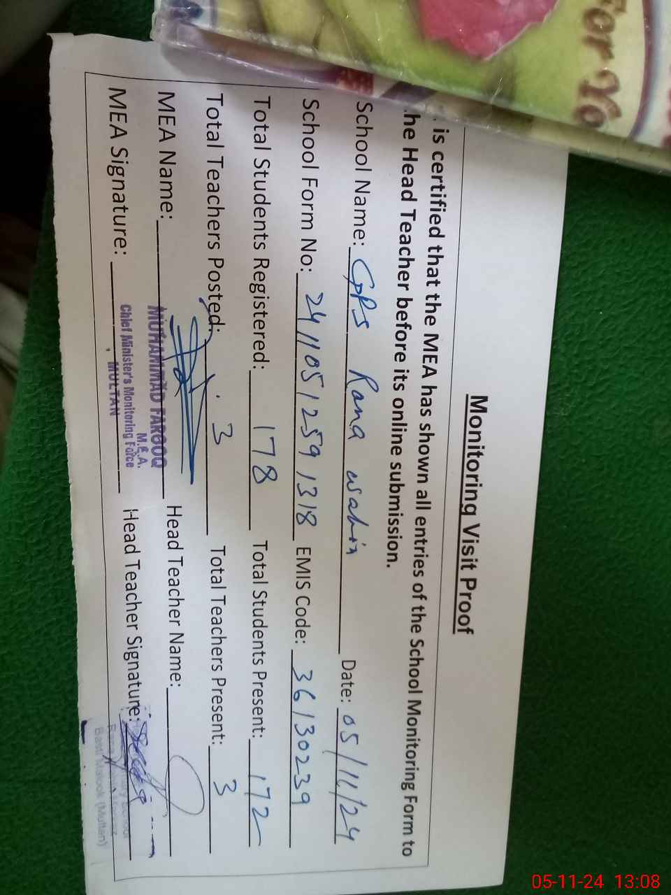 | EMIS Code: 36130239 | Name of School: GPS RANA WAHIN | |||