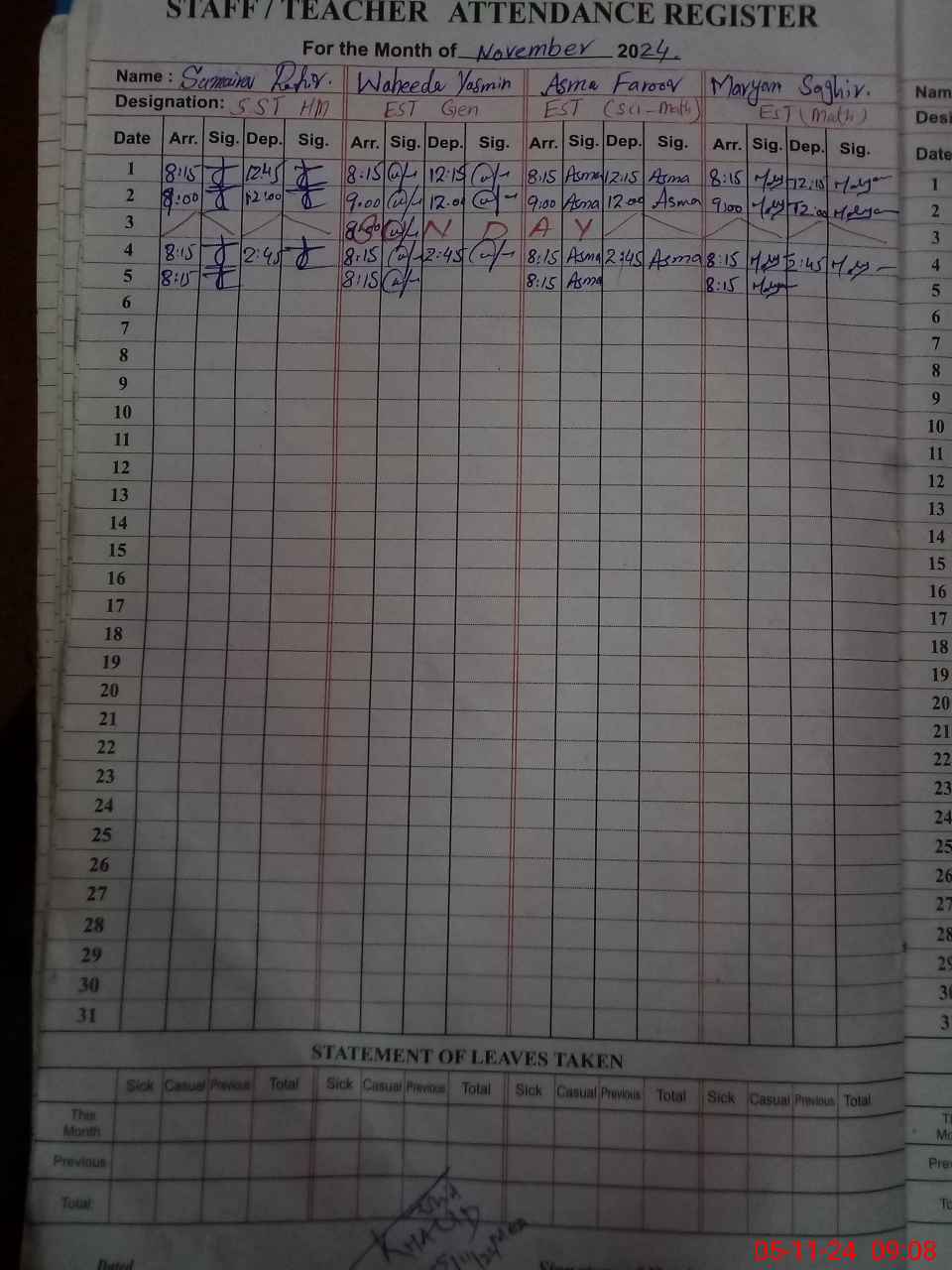 | Leave | Duty | Absent | Maternity | Medical | Ex- Pak |
