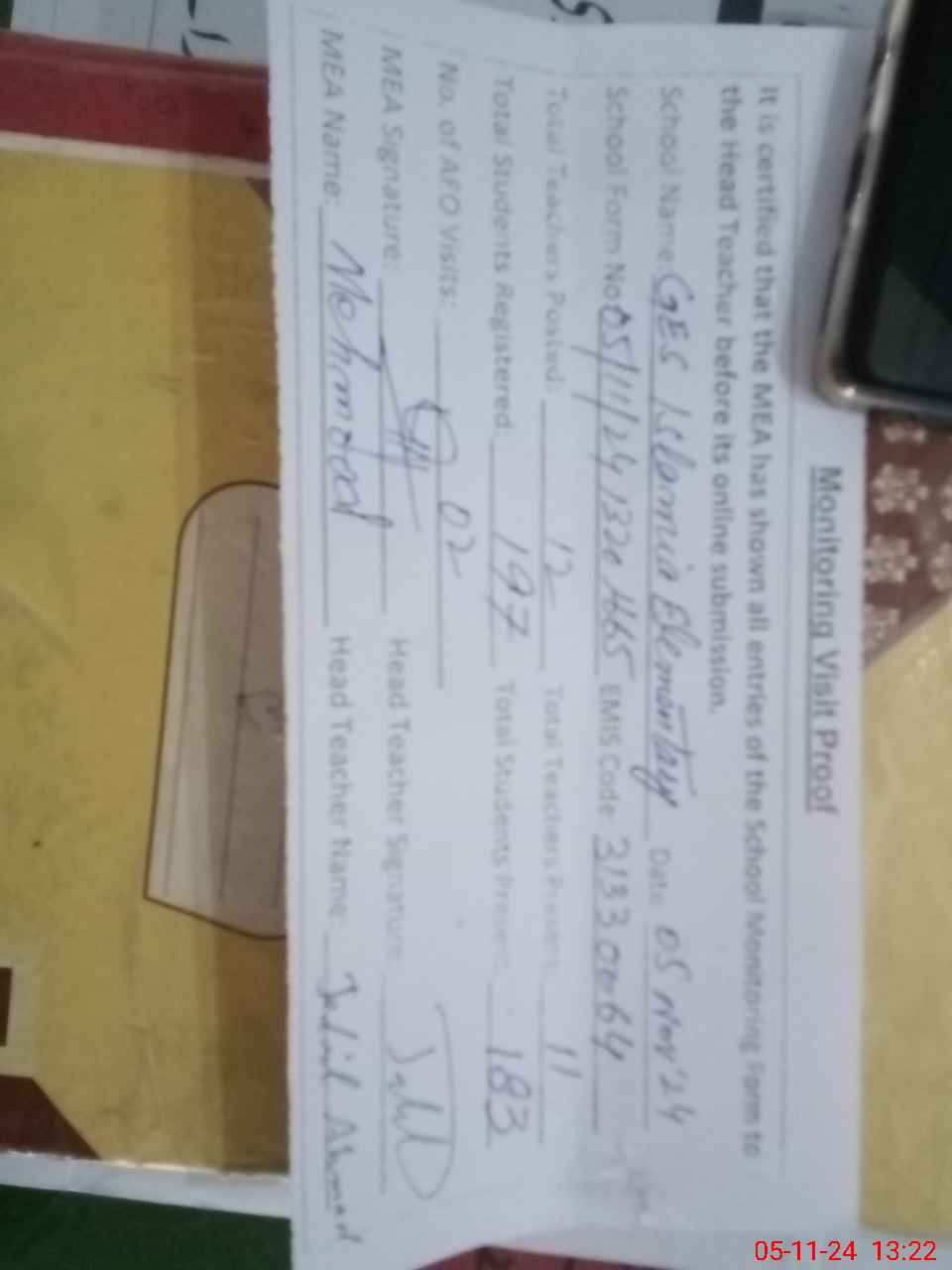 | EMIS Code: 31330064 | Name of School: GES ISLAMIA ELEMENTARY | |||