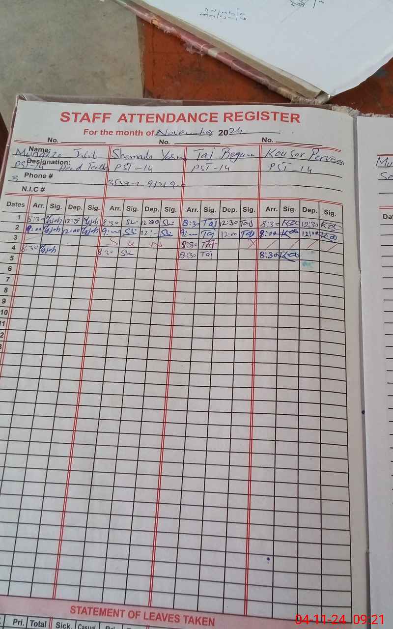 | Name: Mu**** Ja**** Designation: (School Headmaster's/Headmistress's) PST Phone/Cell Number: 03**** |