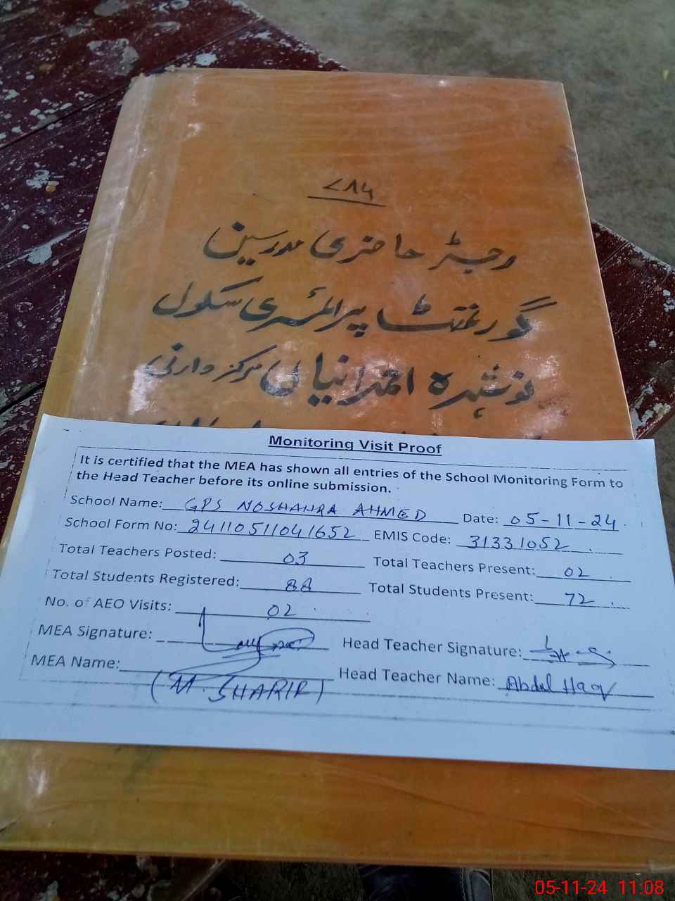 | EMIS Code: 31331052 | Name of School: GPS NOSHAHRA AHMED ANIA P/O DARI AZIM KHAN | |||