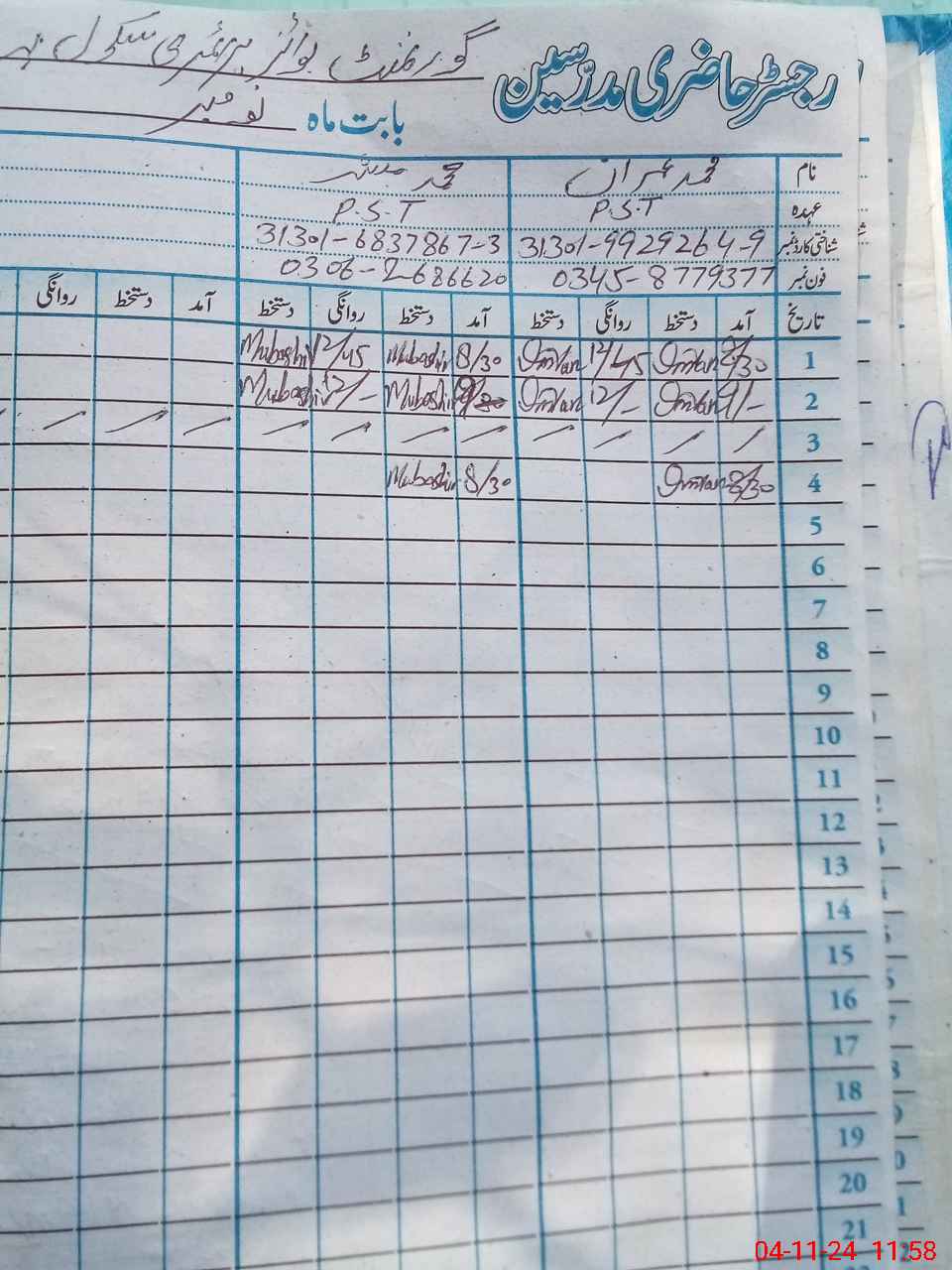 | Name: MIm**** Designation: (School Headmaster's/Headmistress's) PST Phone/Cell Number: 03**** |