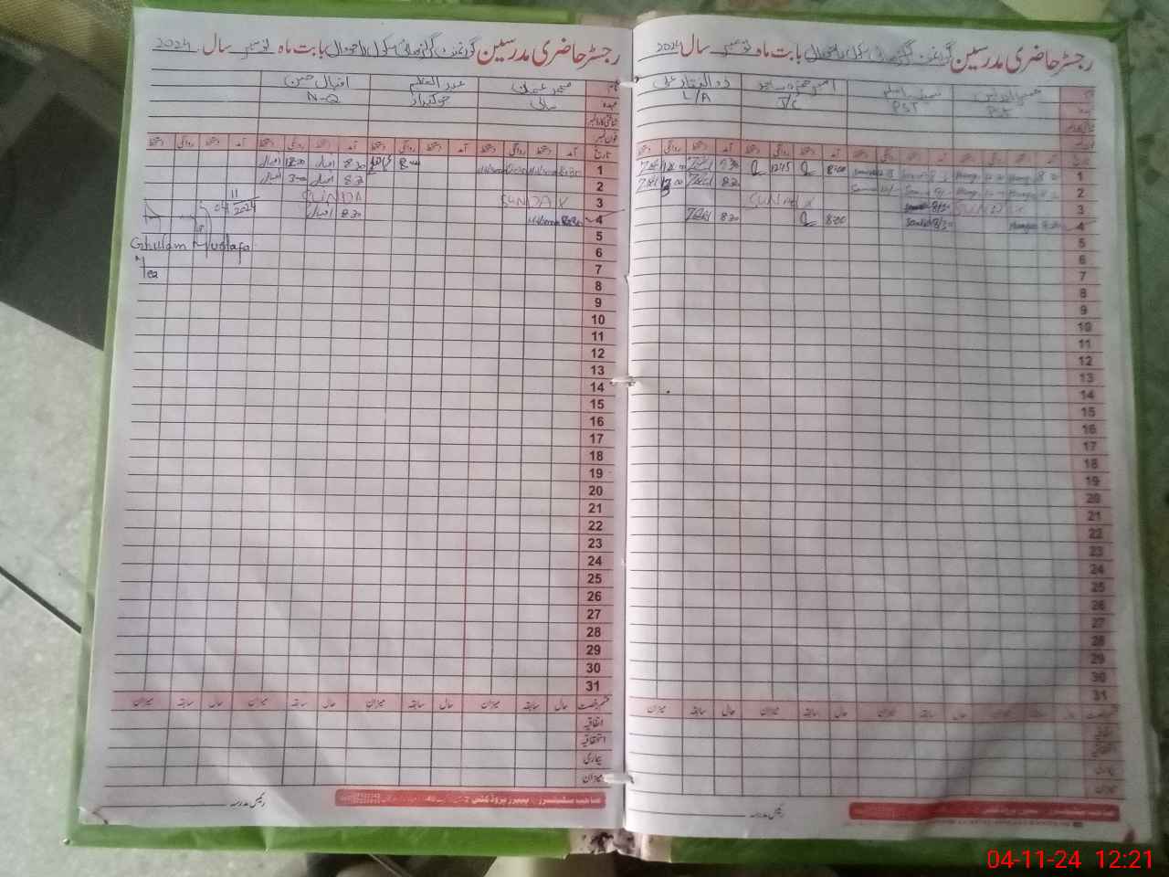 | CNIC | Full Name | Designation | R/C | Absence During Last Calender Month |