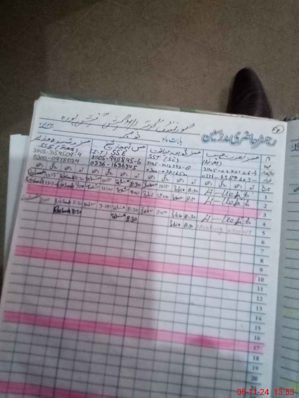| CNIC | Full Name | Designation | R/C | Absence During Last Calender Month |
