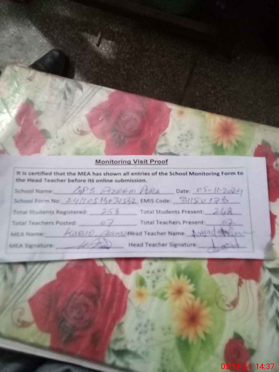 | EMIS Code: 31150176 | Name of School: GPS AZEEM PURA | |||