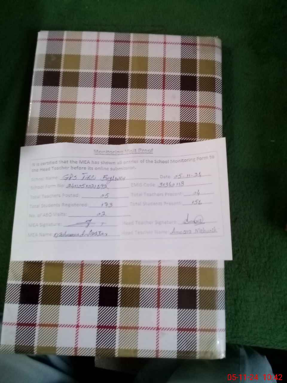 | EMIS Code: 31340118 | Name of School: GPS TIBBI BEGHWER CHAK NO. 168/P | |||