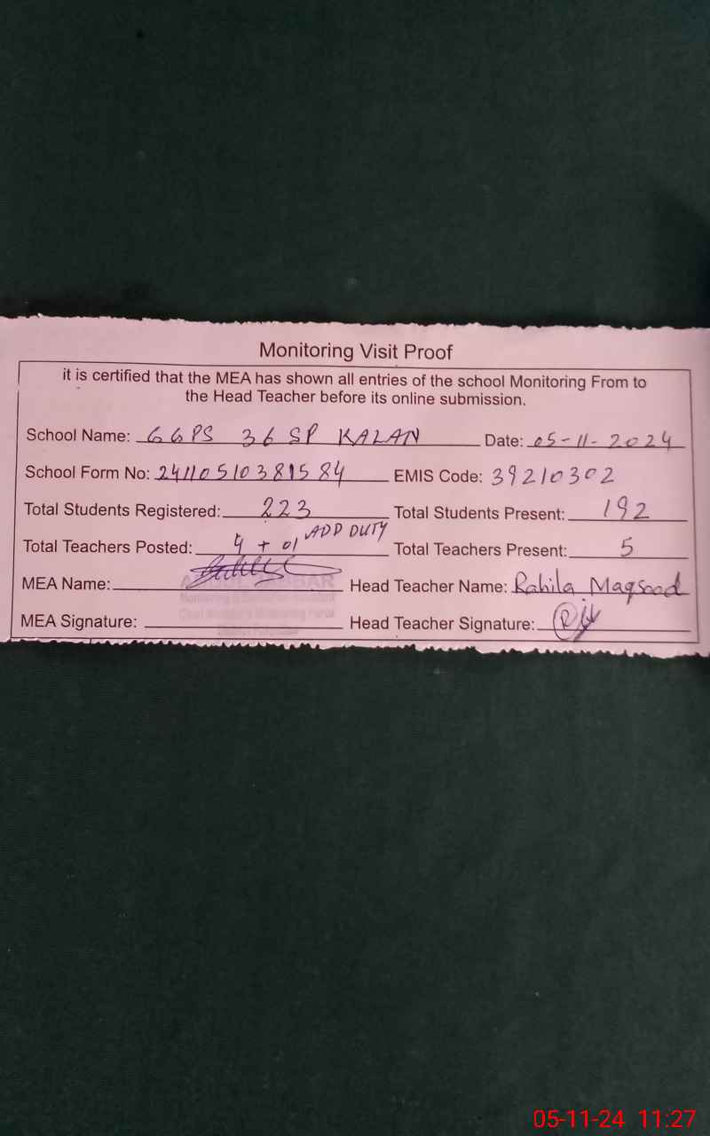 | EMIS Code: 39210302 | Name of School: GGPS 36/SP KALAN | |||