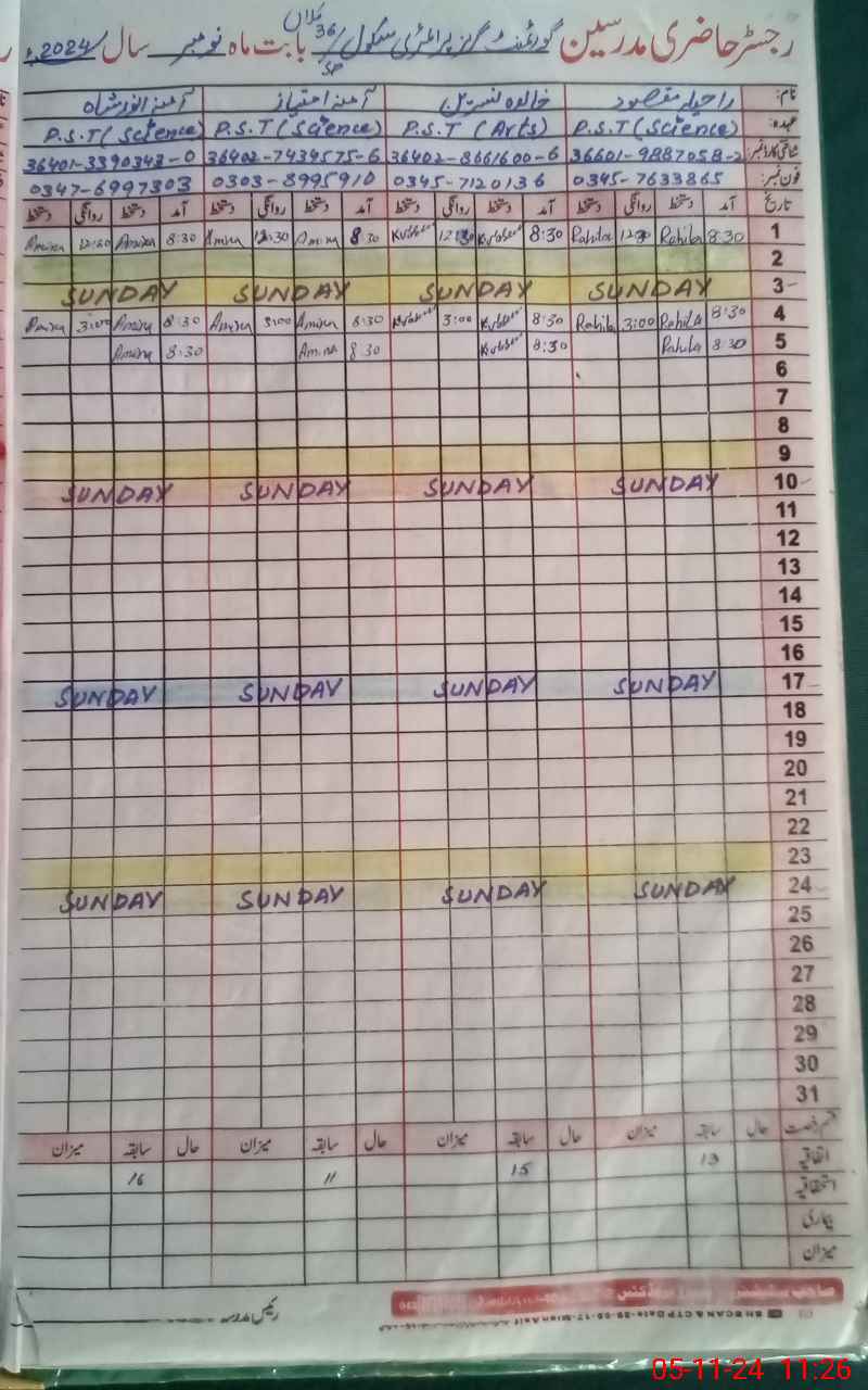 | Name: RA**** MA**** Designation: (School Headmaster's/Headmistress's) PST Phone/Cell Number: 03**** |