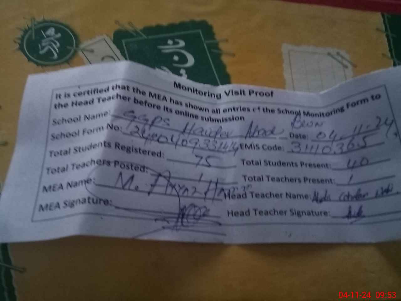 | Certified that this School was Inspected by the Undersigned MEA/DMO Today and the Information Stated Above is as Per Record. | |||||